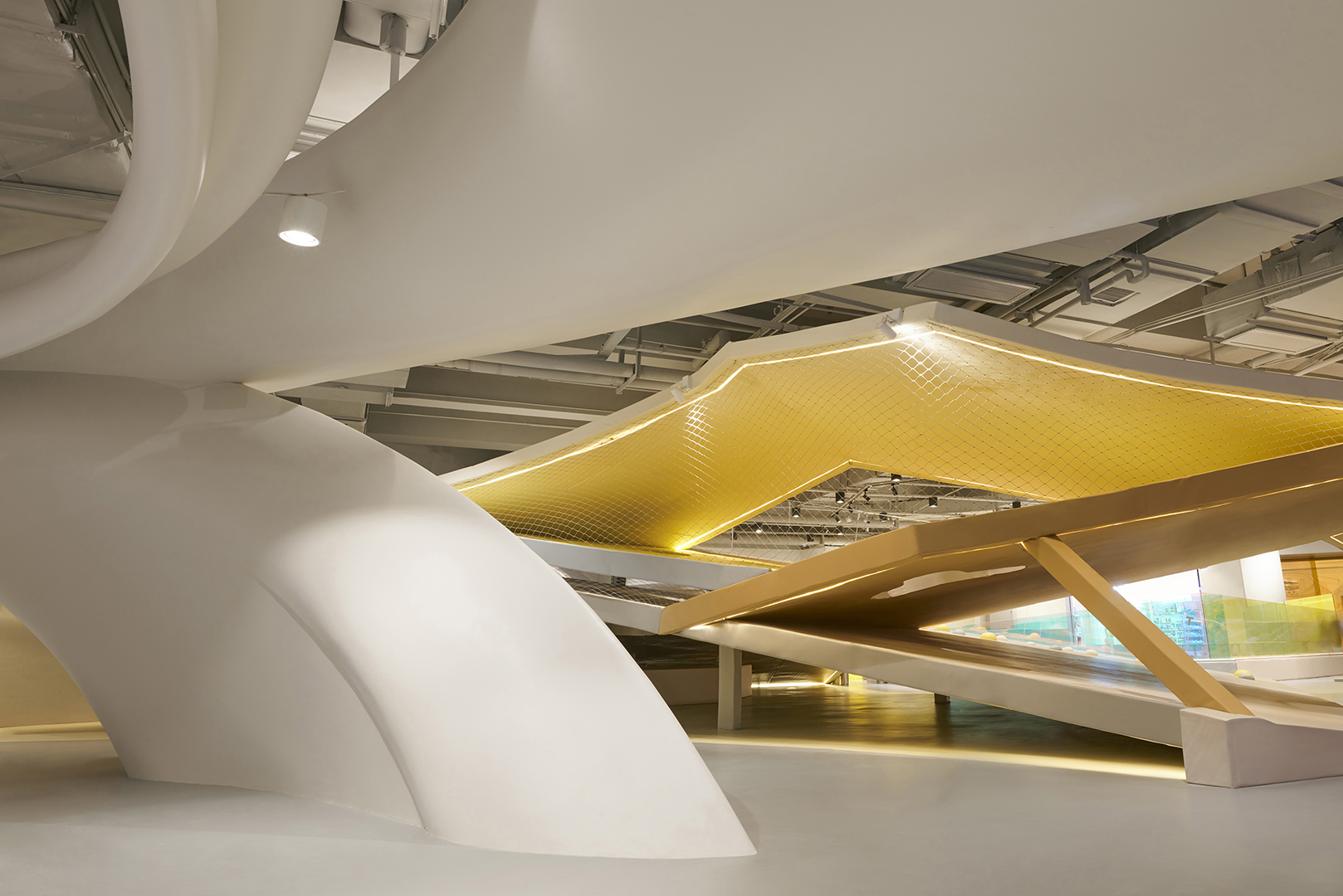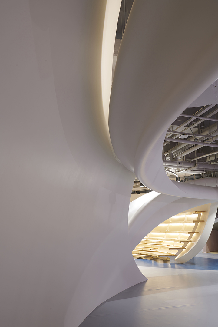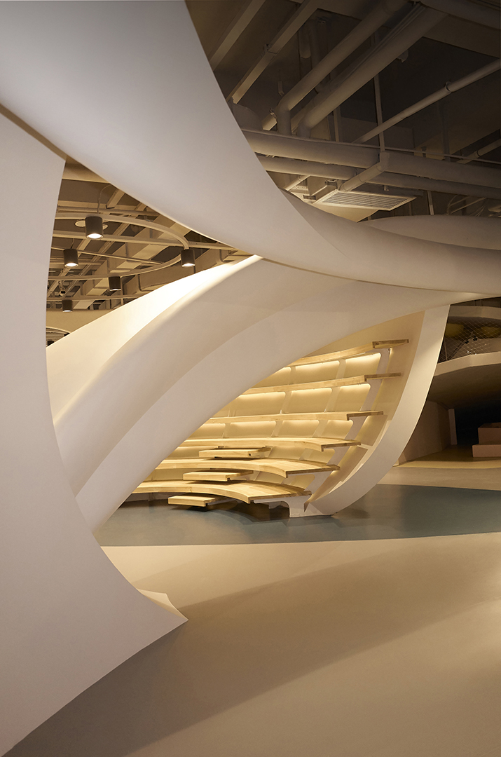 HP Kid Space, the indoor project of SpActrum, went into operation in mid-2019. As a kid space with the new concept, the design team tried to make it become the ideal place for children to resonate with the universe, as well as the memorial place for them to run and to lie supine.