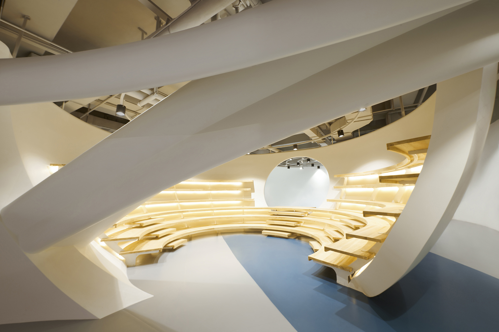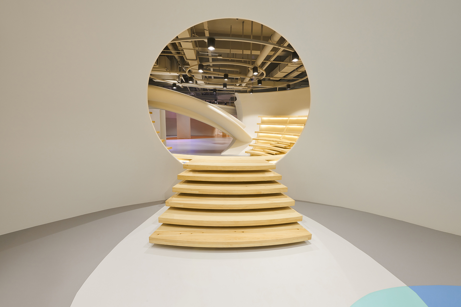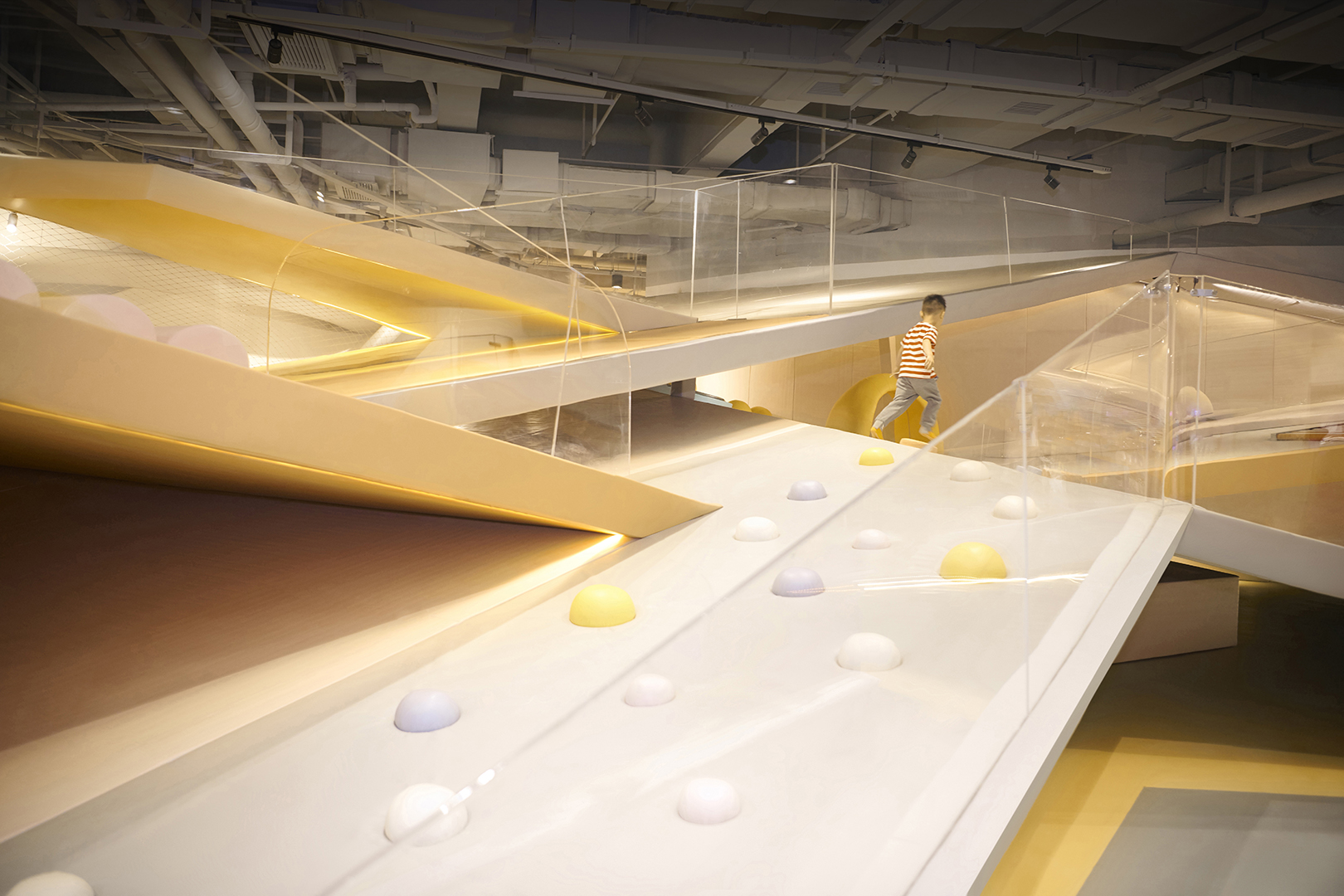 HP Kid Space, the indoor project of SpActrum, went into operation in mid-2019. As a kid space with the new concept, the design team tried to make it become the ideal place for children to resonate with the universe, as well as the memorial place for them to run and to lie supine.