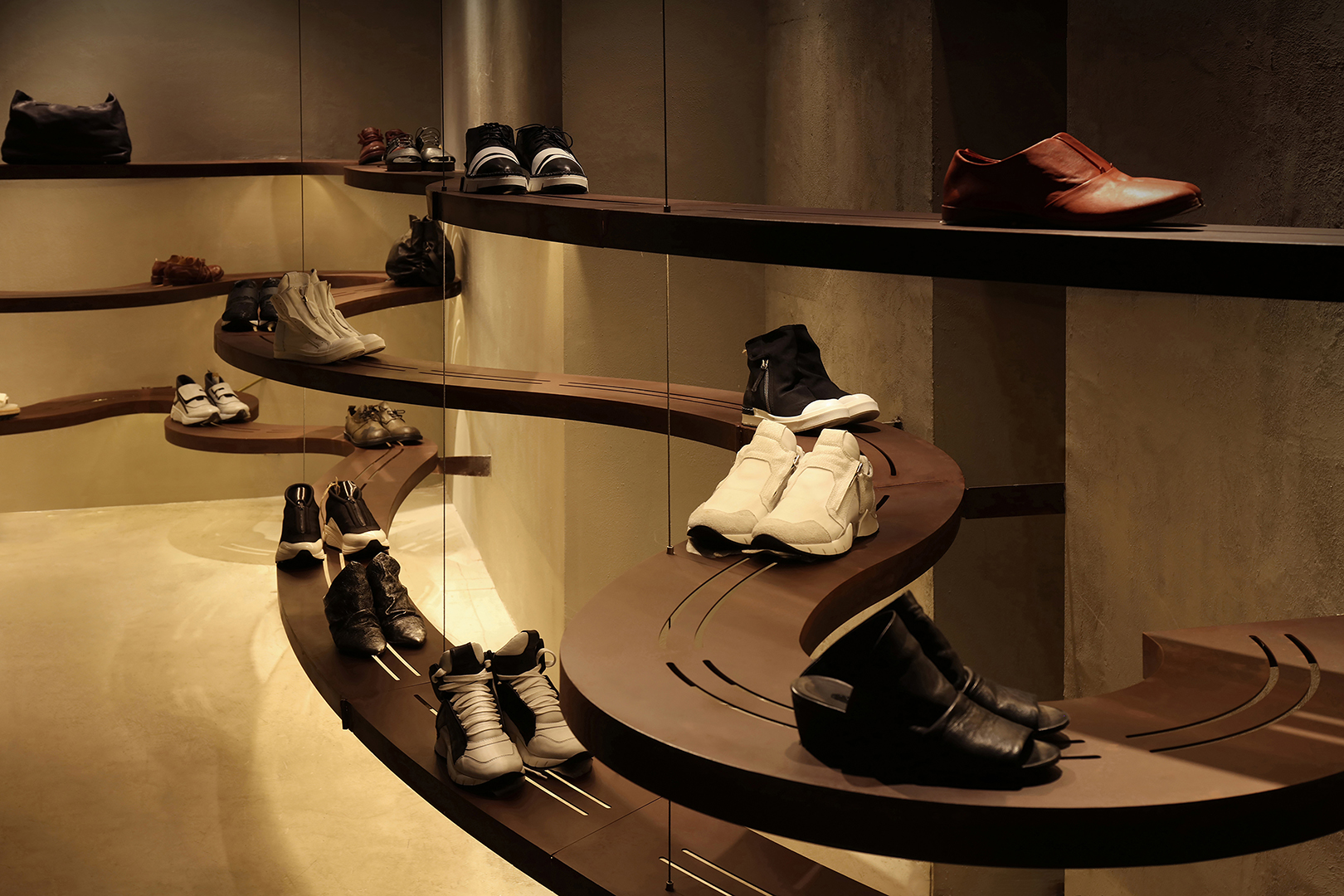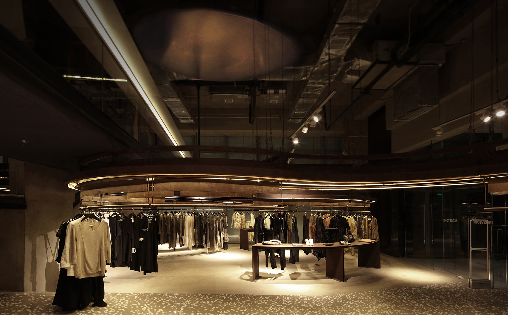 Fashion boutiques have become a growing trend of China’s real economy. Many stereotyped styles are portrayed in them, such as artistic, simple European, dark or industrial styles. This project attempted to provide another answer by dissolving the myth of style, confronting and accepting the spatial characteristics and acknowledging the essential needs of human beings. In order to highlight the real, not only is the concrete structure exposed, but also some of the traces of the construction stage are retained. This quality has verified its value after the completion, and the space has now been recognized by many internationally famous fashion designers.