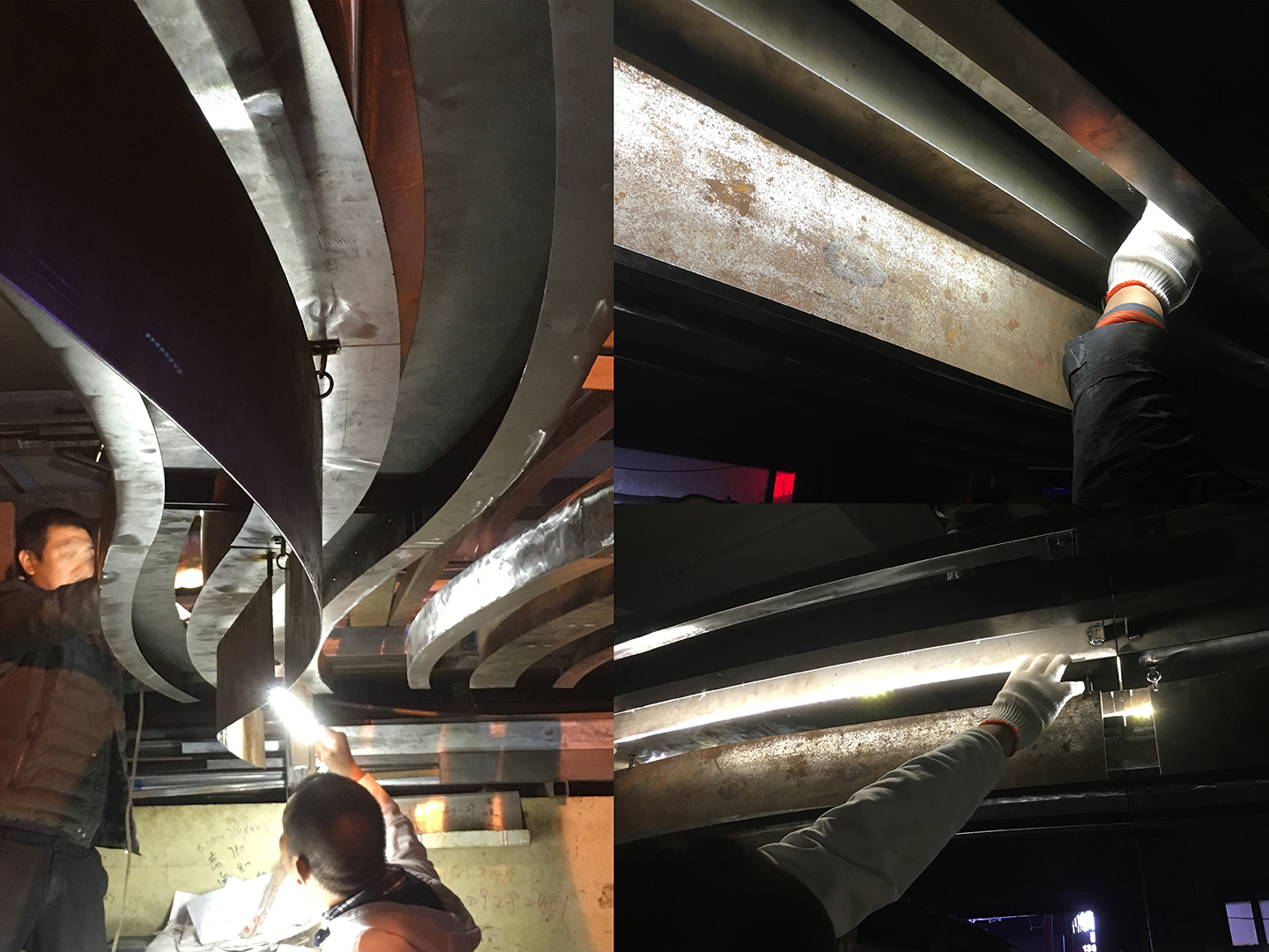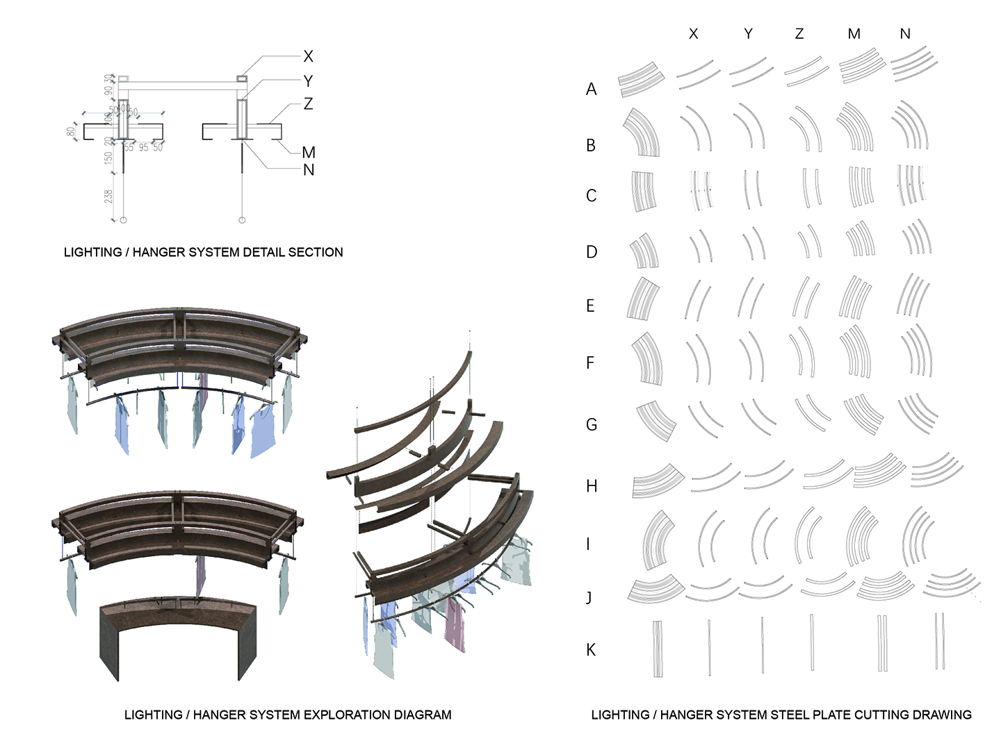The primitive idea of the design was developed into a large and gentle slope towards the entrance. The track from the ramp to the top platform forms a coherent path, while three short stairs were constructed to allow possibilities of more paths. These platforms are connected by steel columns and steel suspension arms to the main structure of the shopping mall. They are condensed into a plane and combined with two basic layers of structure and cladding. To create a floating effect, thin handrails, made of 6mm anodized aluminum plates, are located on the upper glass fence.
